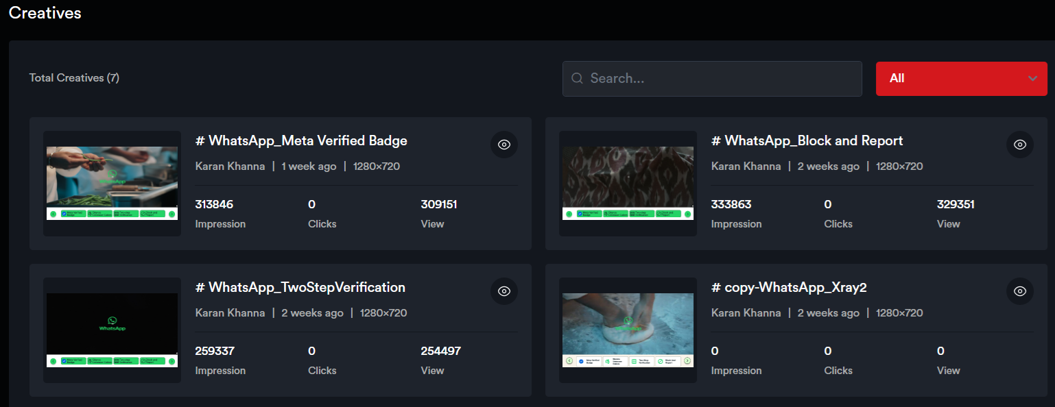 View –  No. of times the Ad has been viewed by the users. An Impression is considered Viewable when 50% of the ad is in the viewport of the device for 1 continuous second.