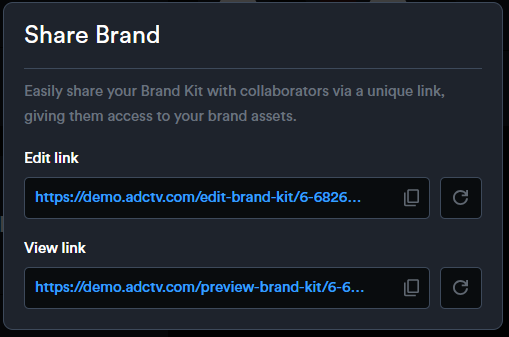 - Edit Link – Allows collaborators to upload assets to the Brand Kit.