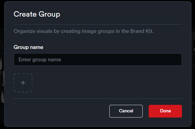 These assets can also be organized into different groups. To create a group, click on ‘Create Group’, enter a name, and upload images directly from the popup.