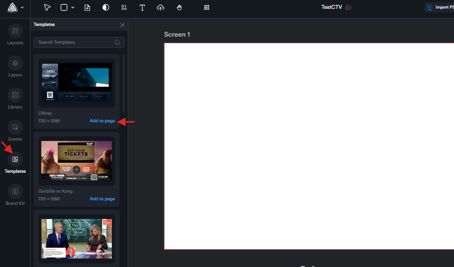 Simply browse through the available templates and click ‘Add to Page’ to instantly insert it into your creative for further customization.