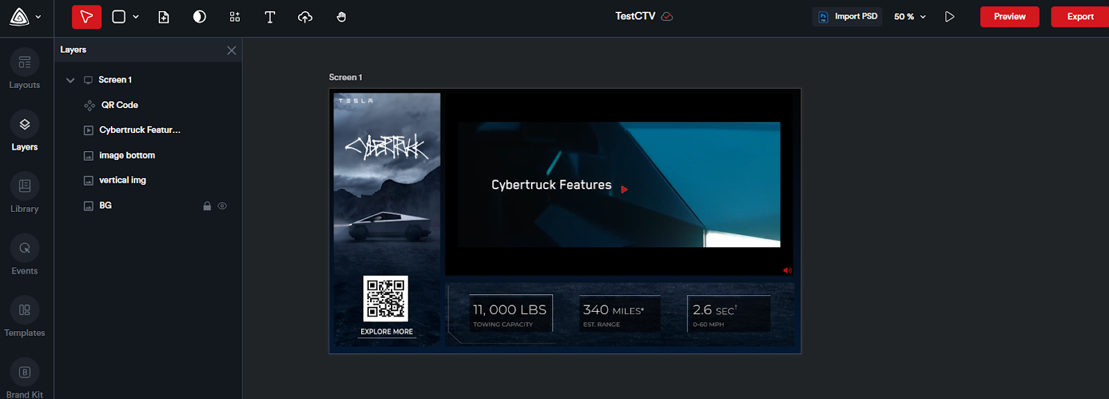 Adctv offers a collection of built-in templates for both Rich Media Display and Connected TV (CTV) ad formats. If starting from a blank canvas feels complex or time-consuming, you can simply select a pre-designed template that suits your creative needs, customize it with your own assets, and quickly build your ad with minimal effort.